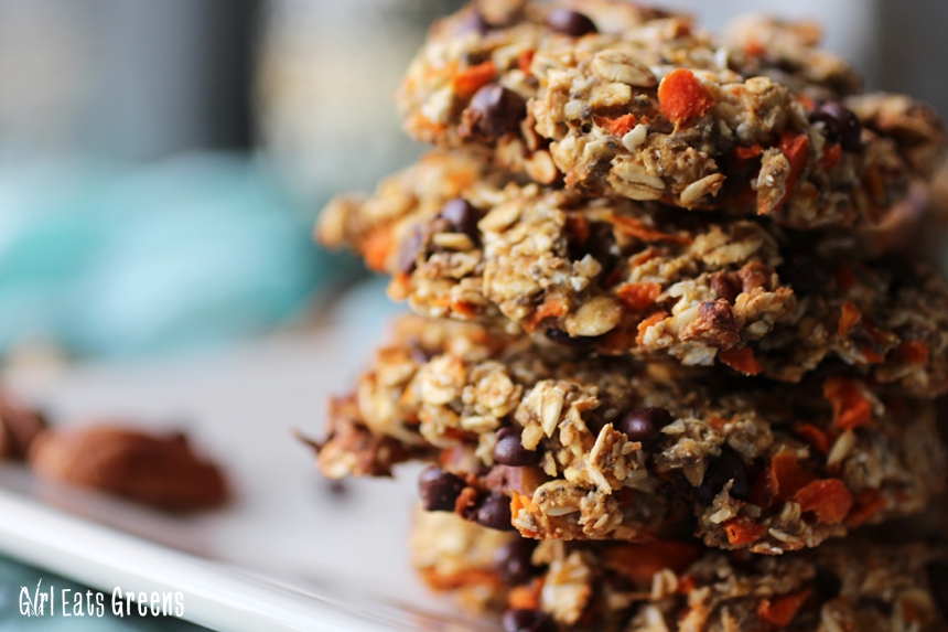 Magic Cookie Carrot Oat Pecan Coconut Vegan Vegetarian Girl Eats Greens_0021 Magic Cookie Carrot Oat Pecan Coconut Vegan Vegetarian Girl Eats Greens_0033In an effort to keep this on the  lower-sugar side, I only used a small amount of maple syrup for sweetness. But if you have a big ol sweet tooth, I recommend either using sweetened shredded coconut, or adding some more maple syrup or agave (or plain old sugar will work too). I found the mini chocolate chips to be the perfect amount of sweet without being rot-your-teeth sweet.