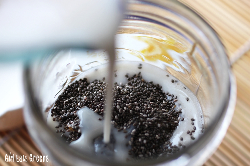 4. Refrigerate overnight, until chia seeds have soaked up the almond milk and the pudding has a tapioca consistency