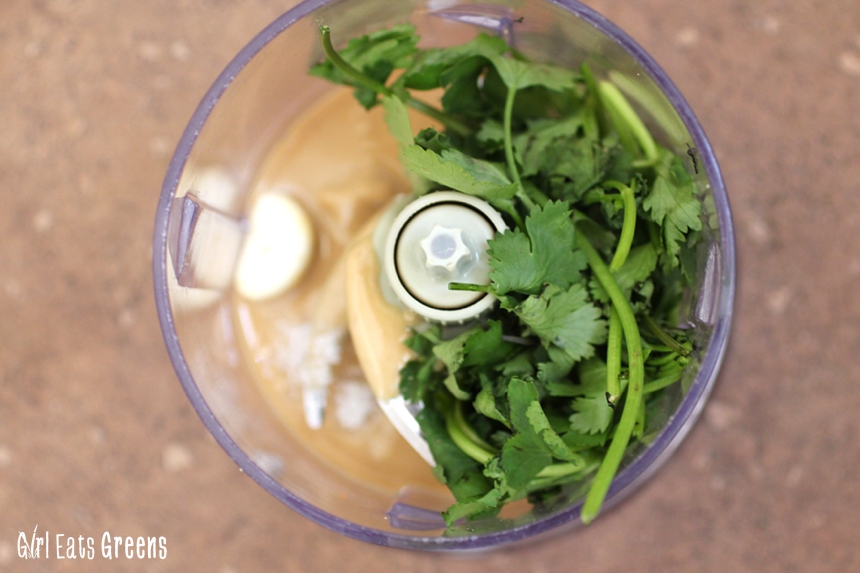 Happy Saturday everyone! I must confess, I had every intention of whipping up an amazing shamrock-shake-esque smoothie to post for today, since we’re so close to St. Patrick’s day. Unfortunately, my day job has been insane these past couple weeks and I’m lucky I had time to get anything ready to post today. So I decided to at least stick with the idea of something green and festive – and share instead a new favorite of mine – cilantro tahini sauce.