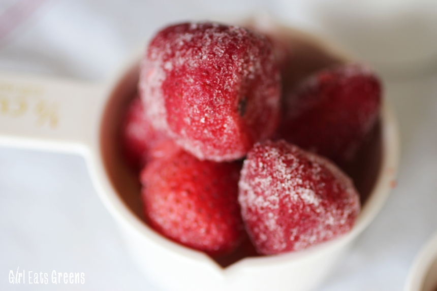 Step 2: Frozen fruit! This might be totally obvious, but your ingredients are totally going to make or break your smoothie. The best way to get them really cold and delicious is use frozen fruit. I always go with frozen fruit because it tends to be cheaper than fresh, and then there’s no need to toss in ice. Because let’s be honest, ice never really breaks all the way down and then you have something that resembles a snowcone rather than a smoothie.